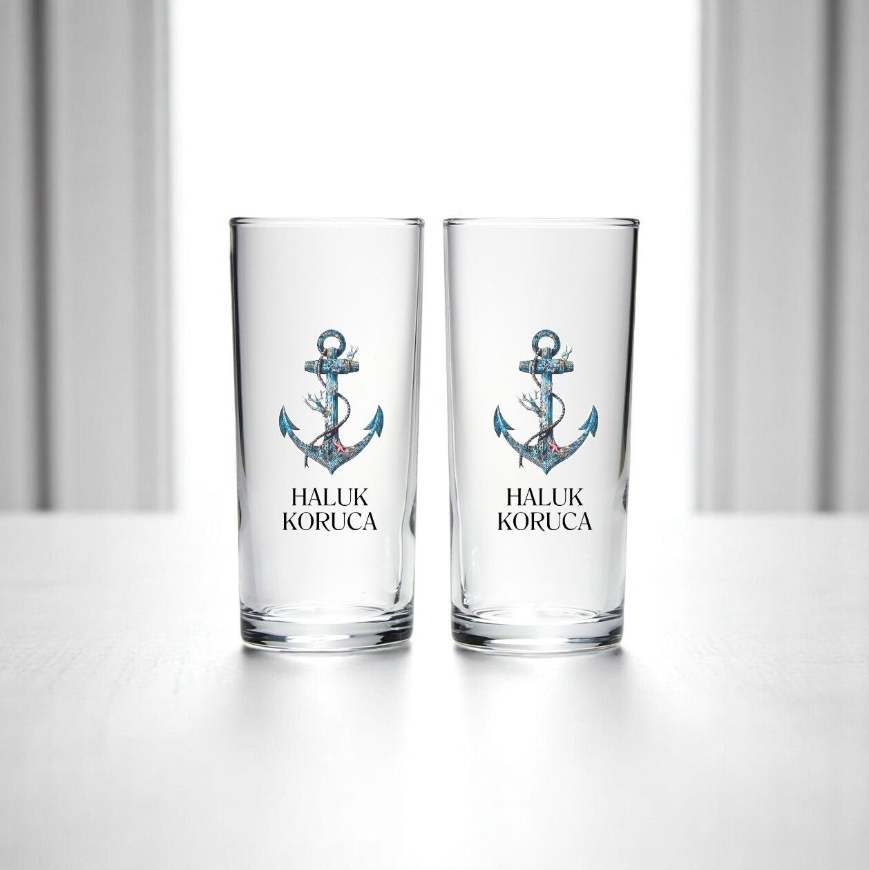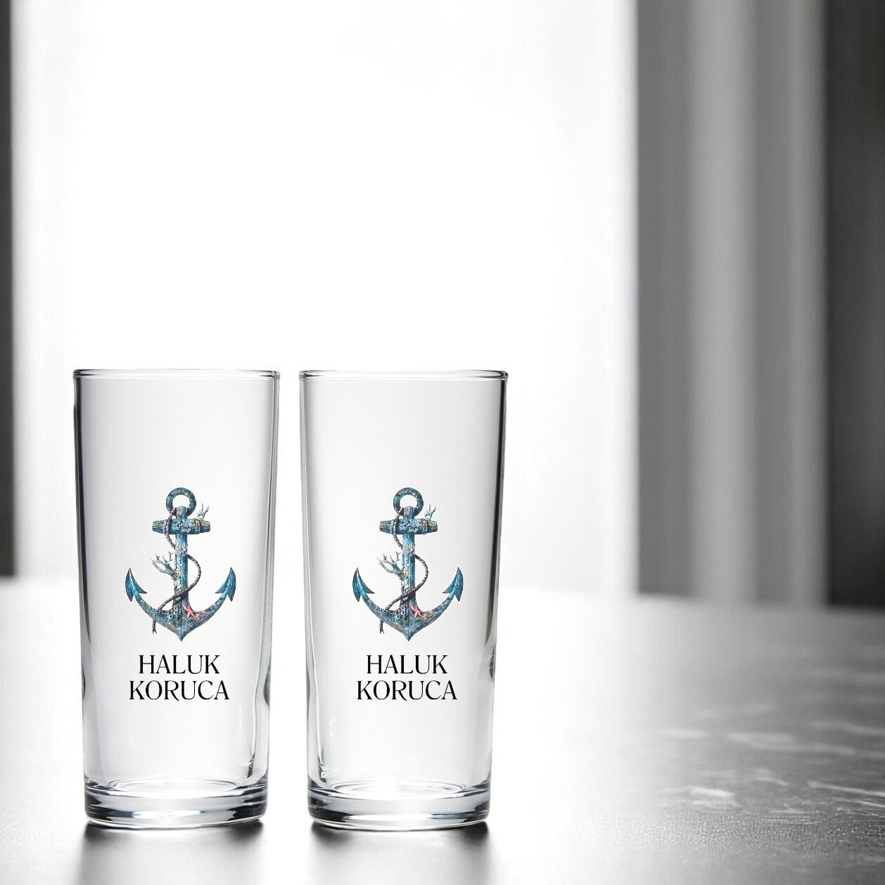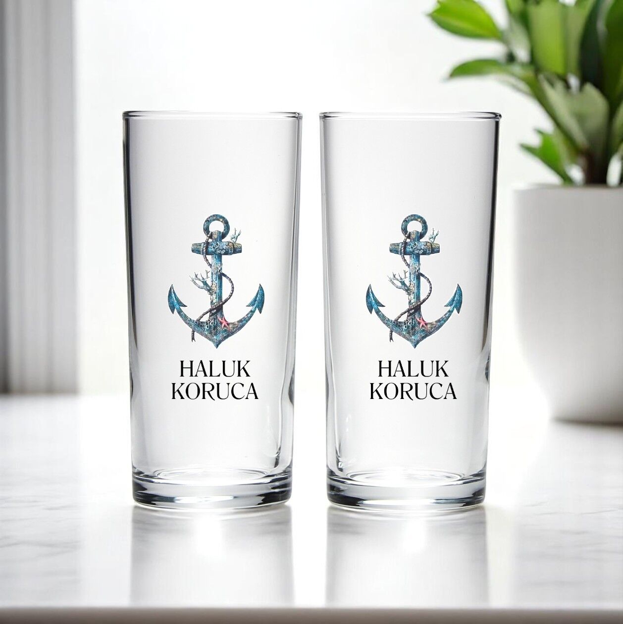 Çapa Motifli İsim Baskılı İkili Rakı Bardağı