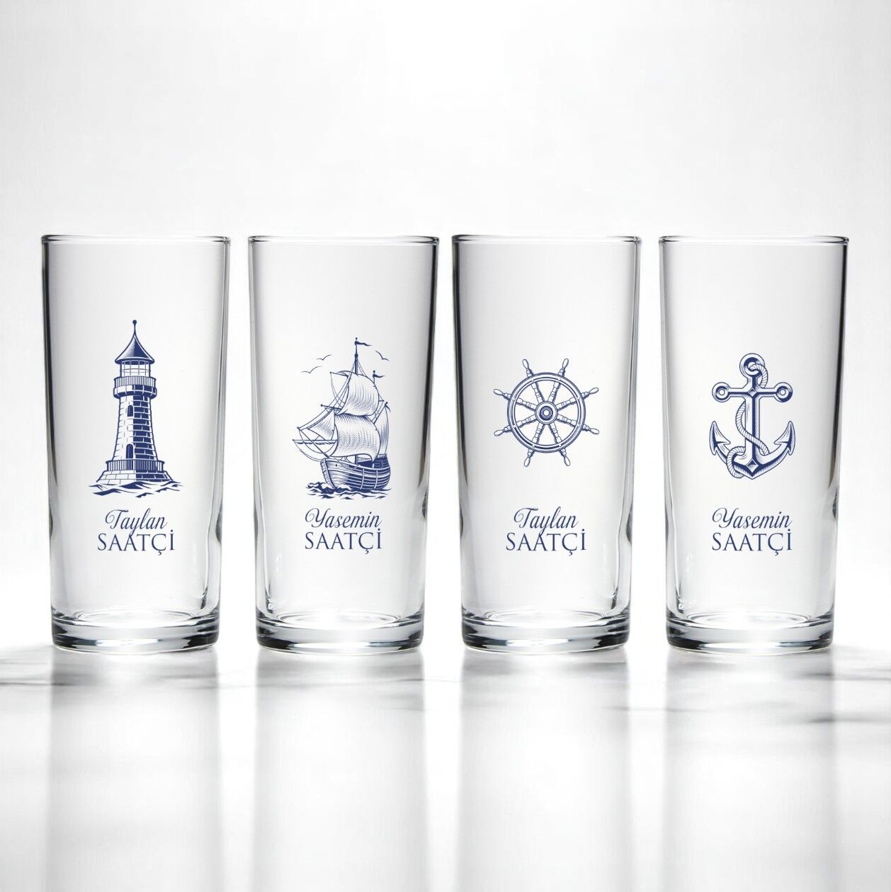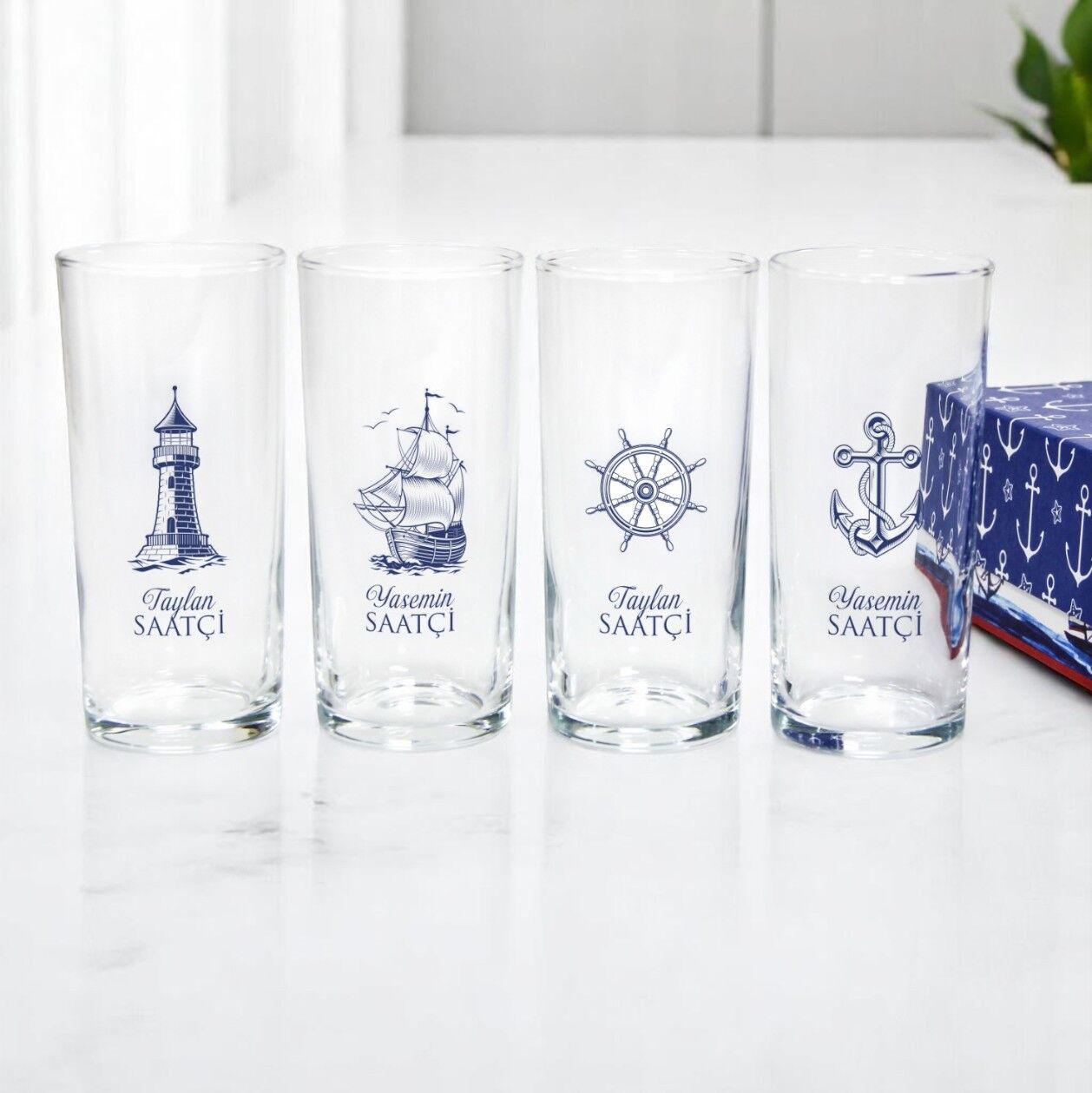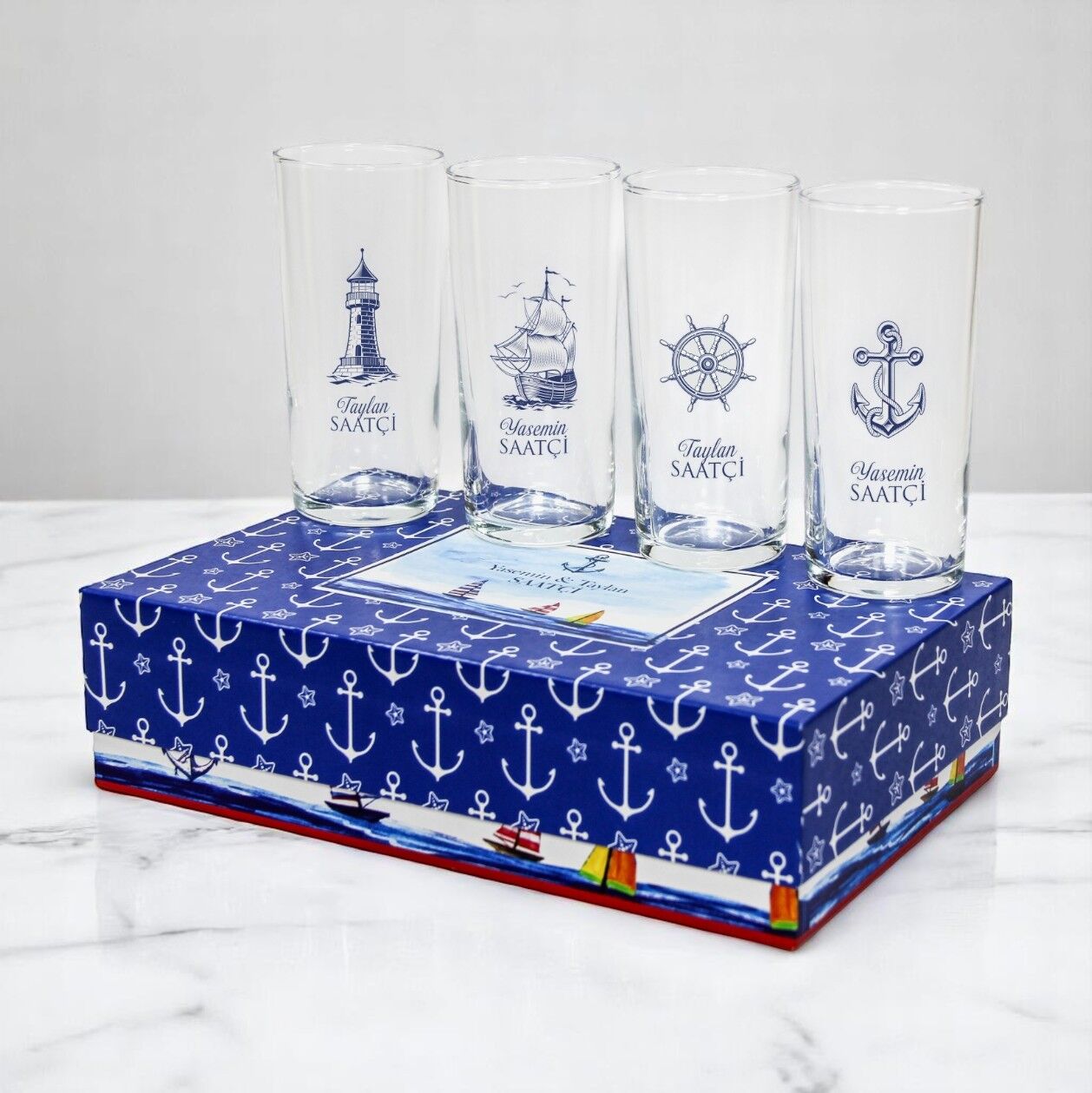 Denizci 4’lü Rakı Bardağı Seti – Kişiye Özel Kutulu Hediye