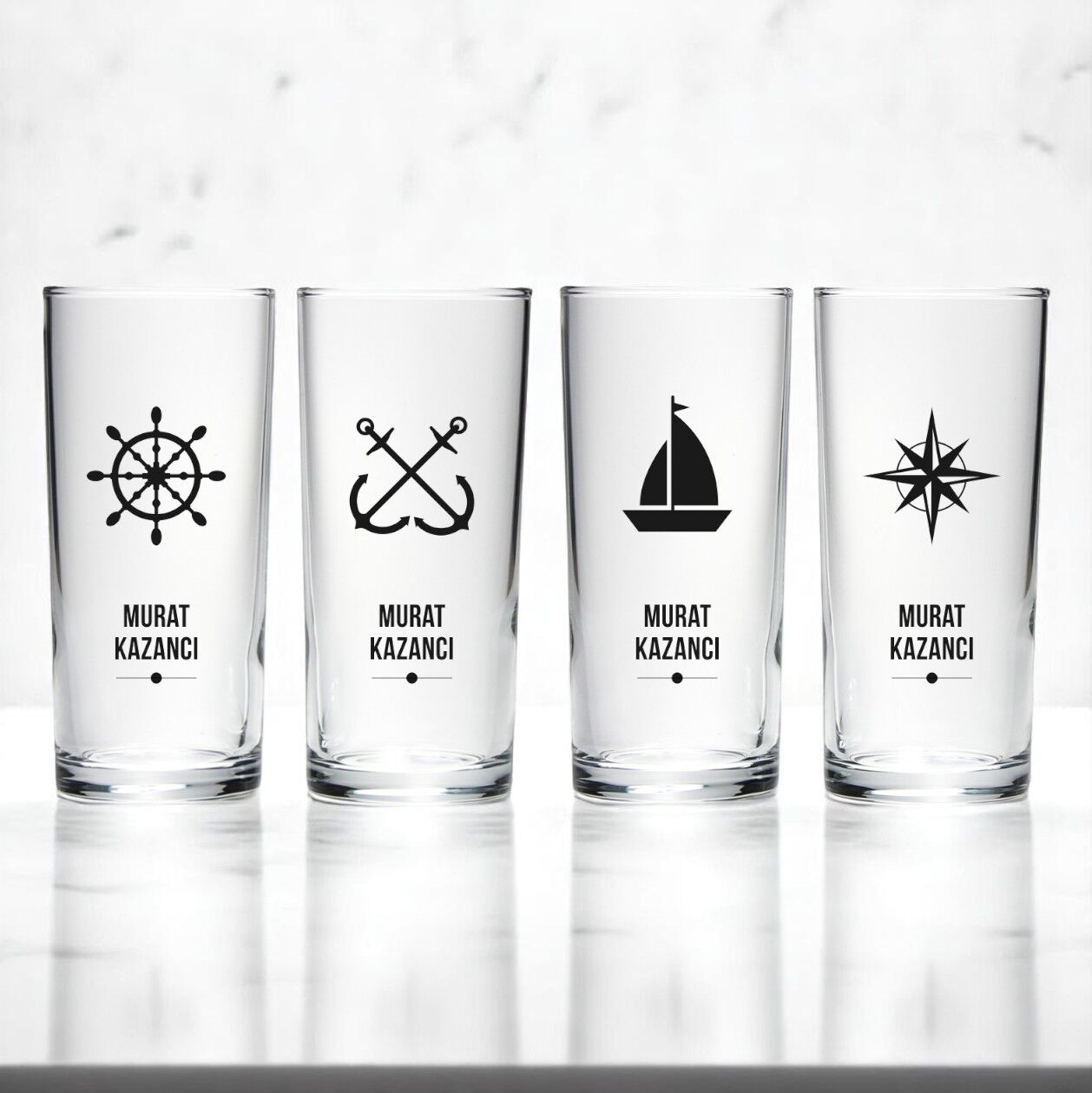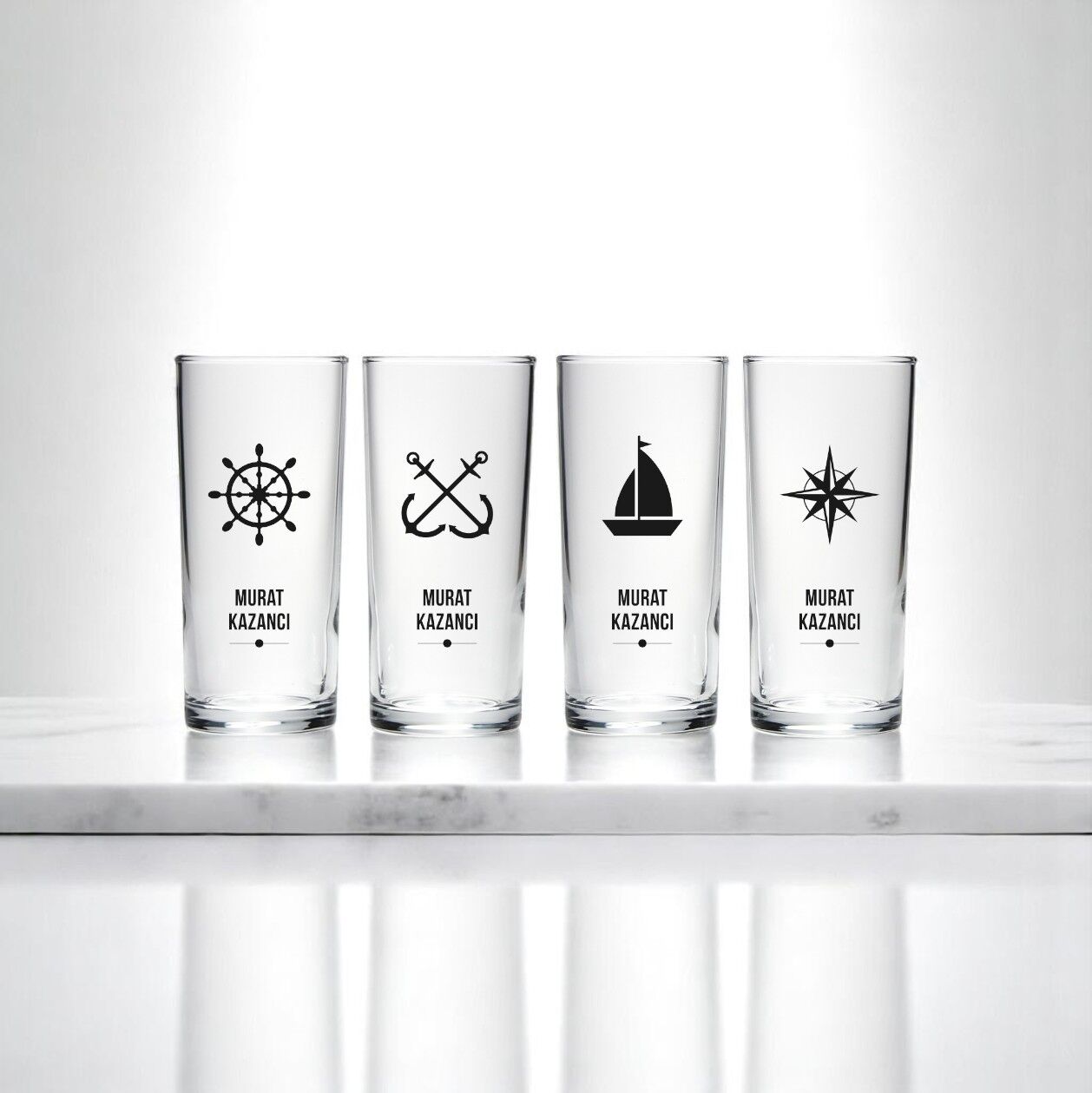 Kişiye Özel İsim Baskılı Dörtlü Rakı Bardak Set