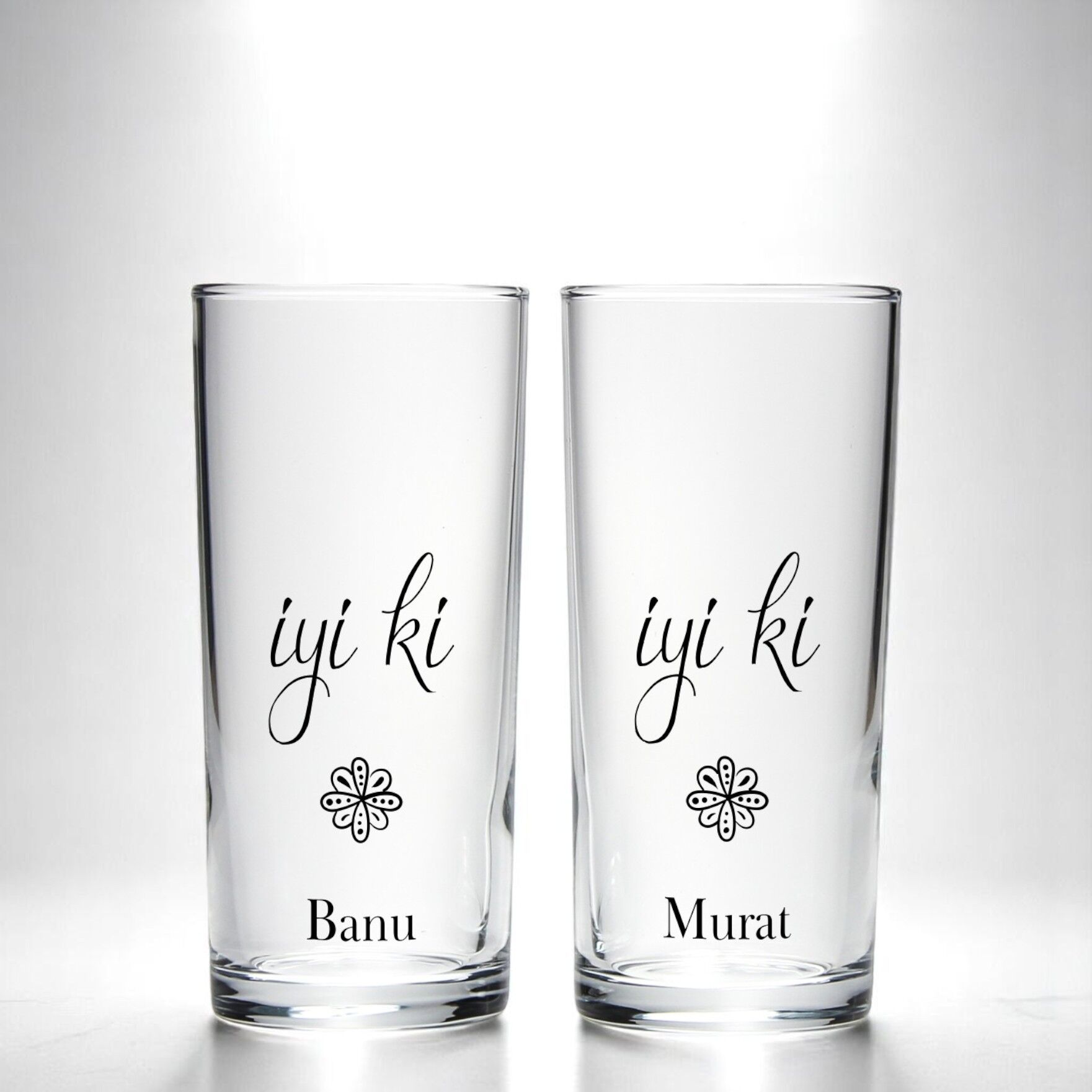 ''İyi ki'' İsimli İkili Rakı Bardağı Kişiye Özel Kabartma UV Baskılı Rakı Bardağı. Sofranızda Fark Yaratın. Sevdiklerinize Mükemmel Bir Hediye. Çok Özel Ürünler için Keyifli Kadeh. KK140 ''İyi ki'' İsimli İkili Rakı Bardağı