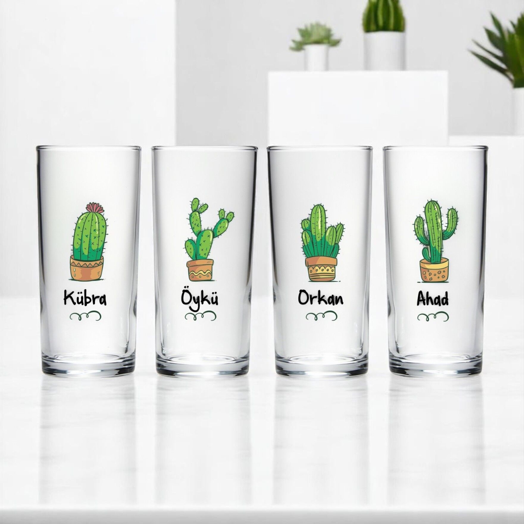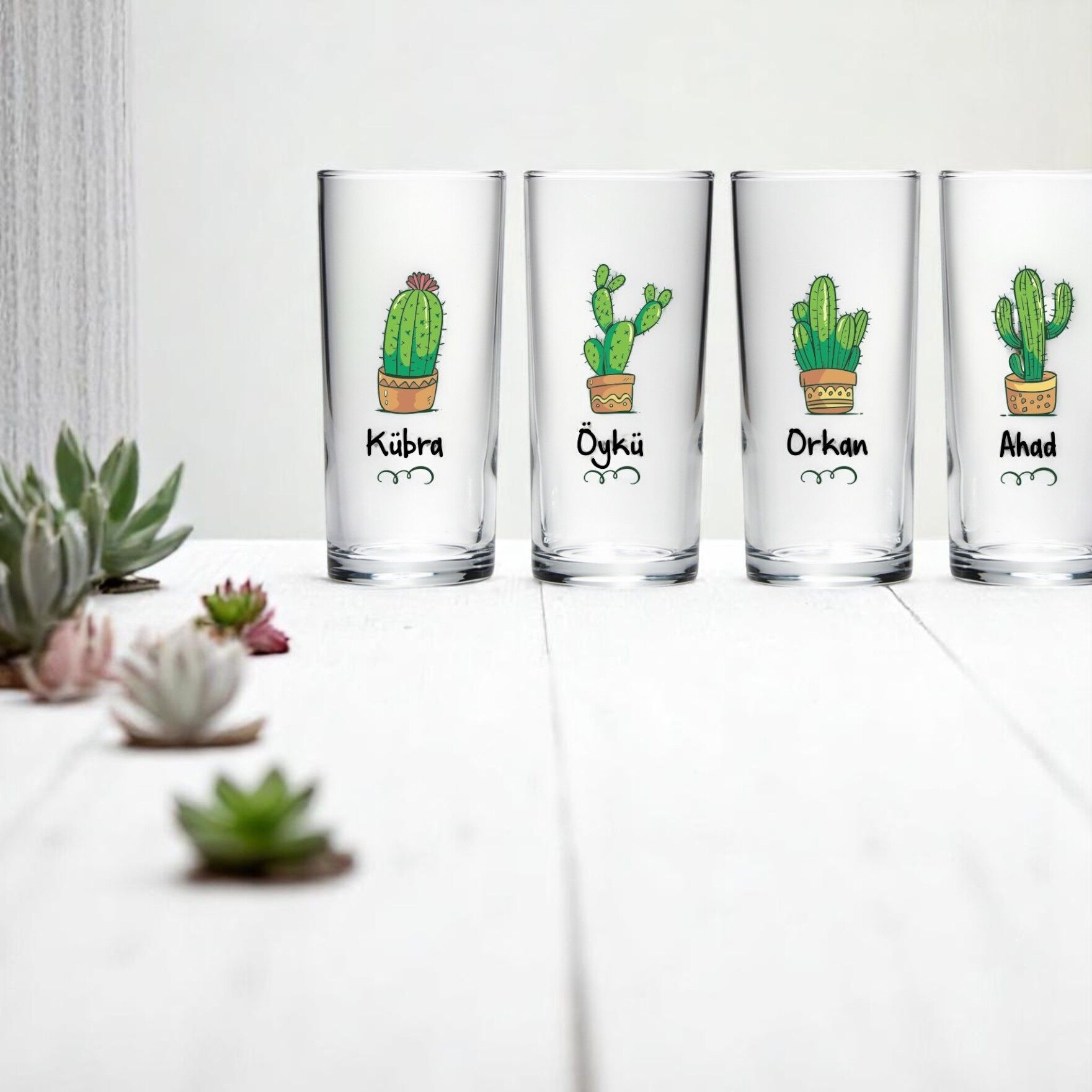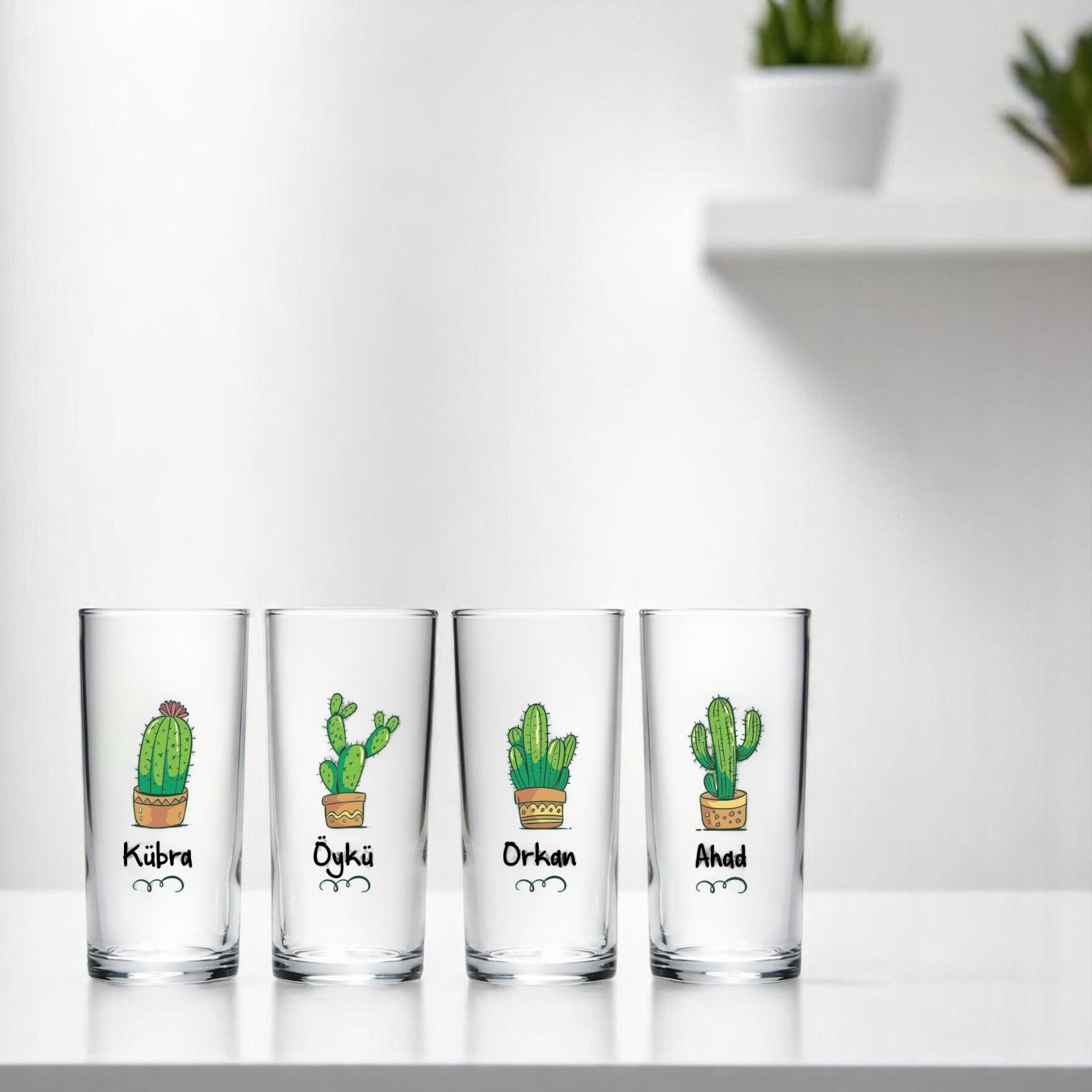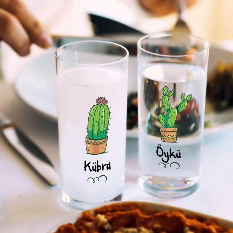 Kişiye Özel İsim Baskılı Kaktür Dörtlü Rakı Bardağı