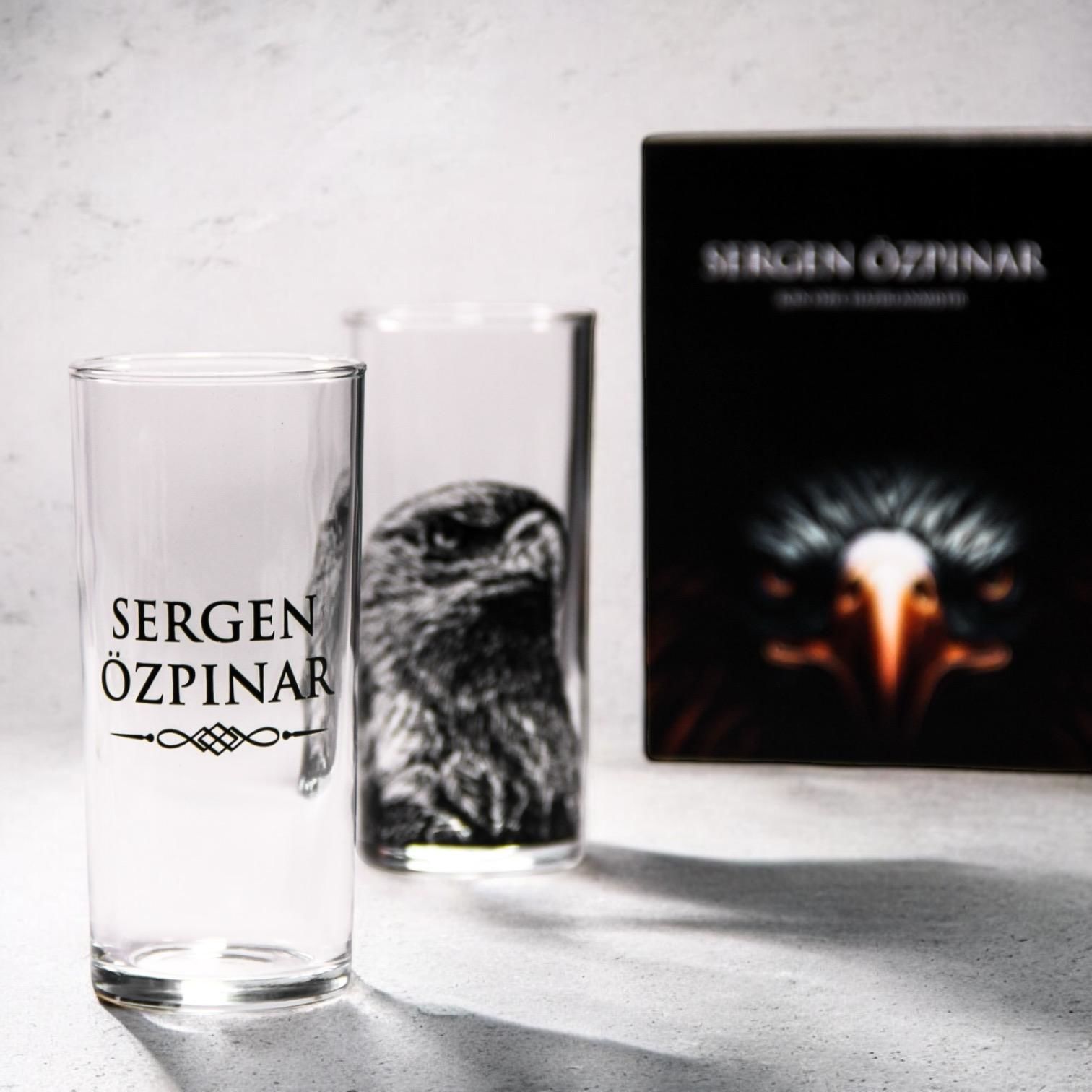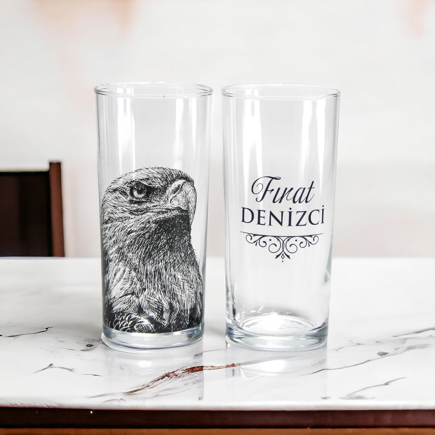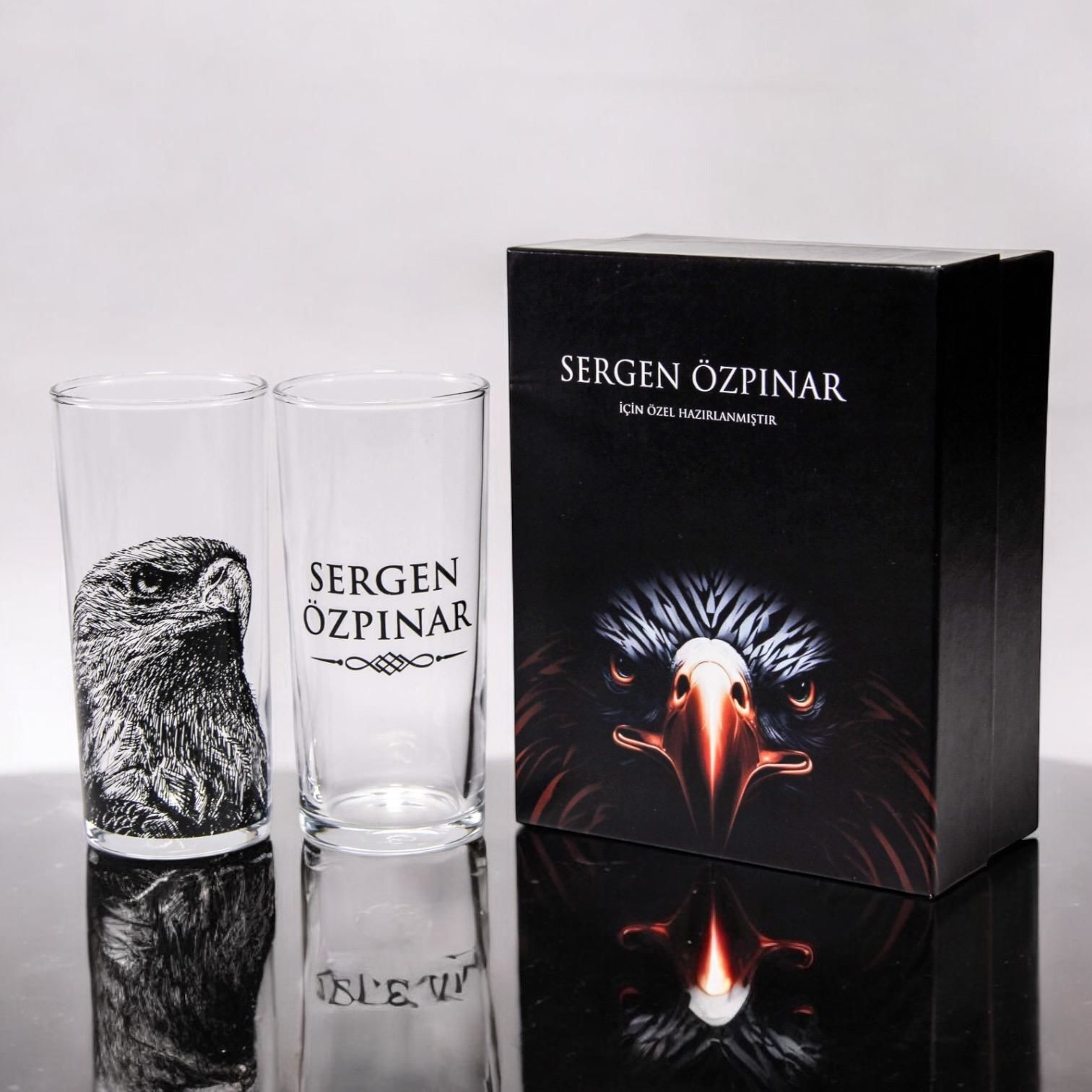 Kartal Figürlü İsim Baskılı İkili Rakı Bardağı