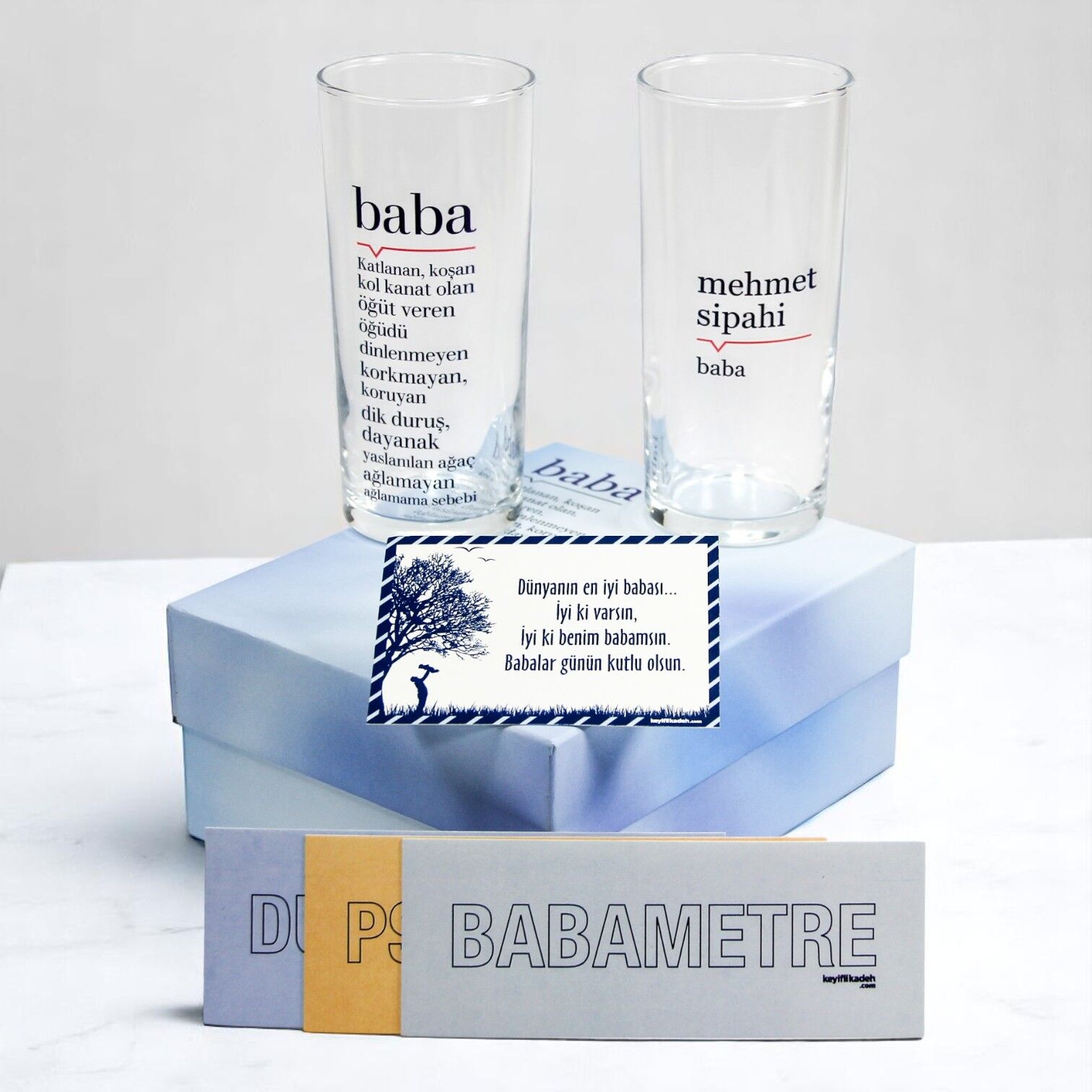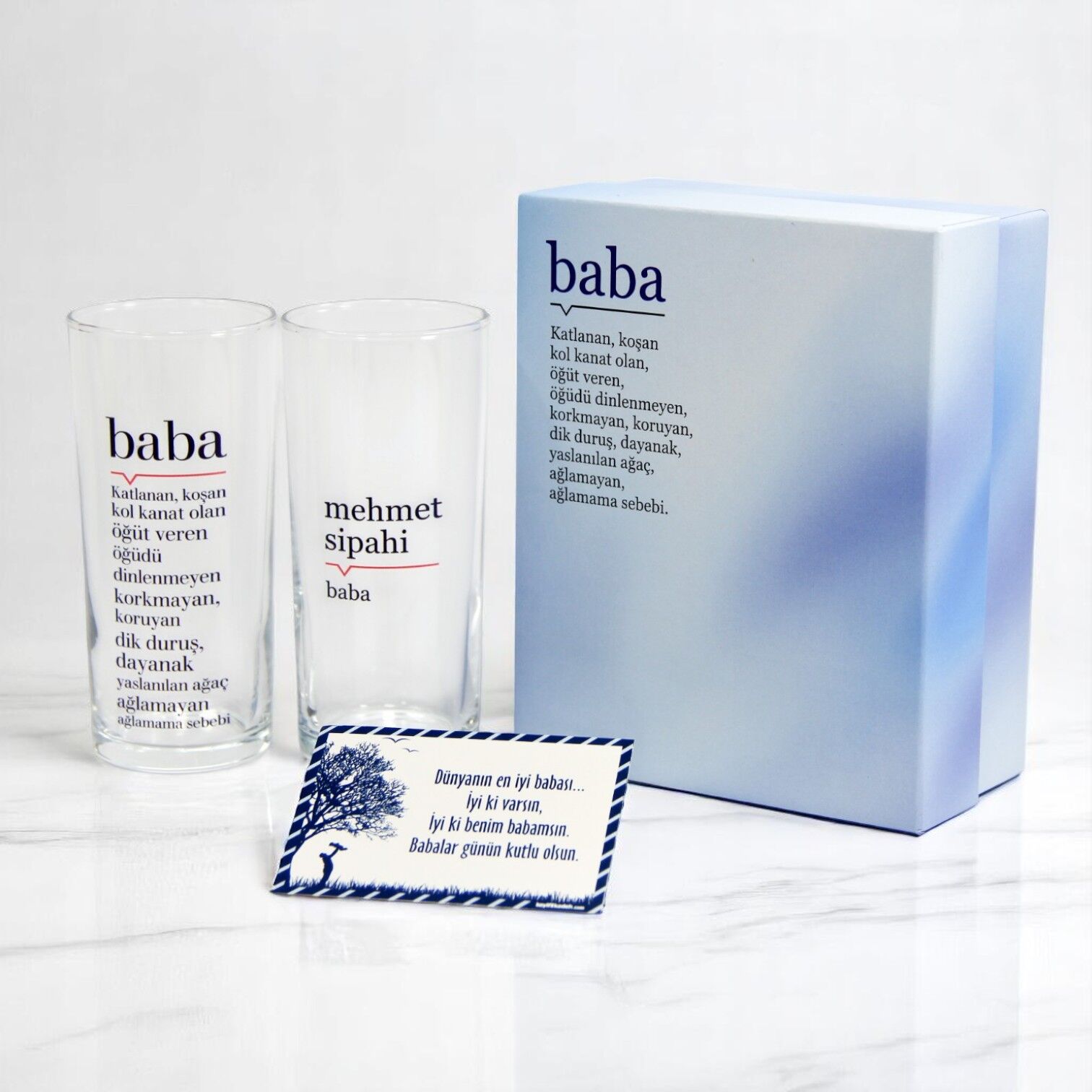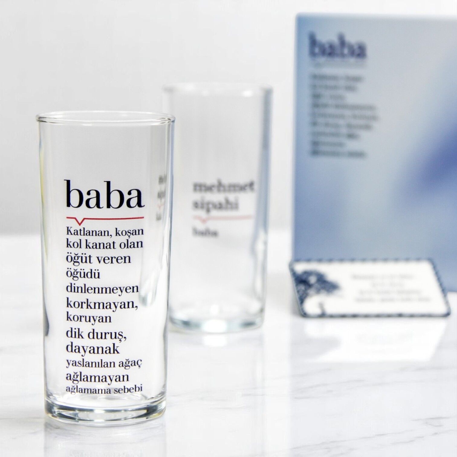 Özenle tasarlanmış bu özel rakı bardağına babanızın ismini kalıcı ve kabartmalı bir baskı ile işliyoruz. Her yudumda size olan sevginizi hatırlayacağı bu şık hediye, hem kişisel hem de unutulmaz bir armağan olacak.