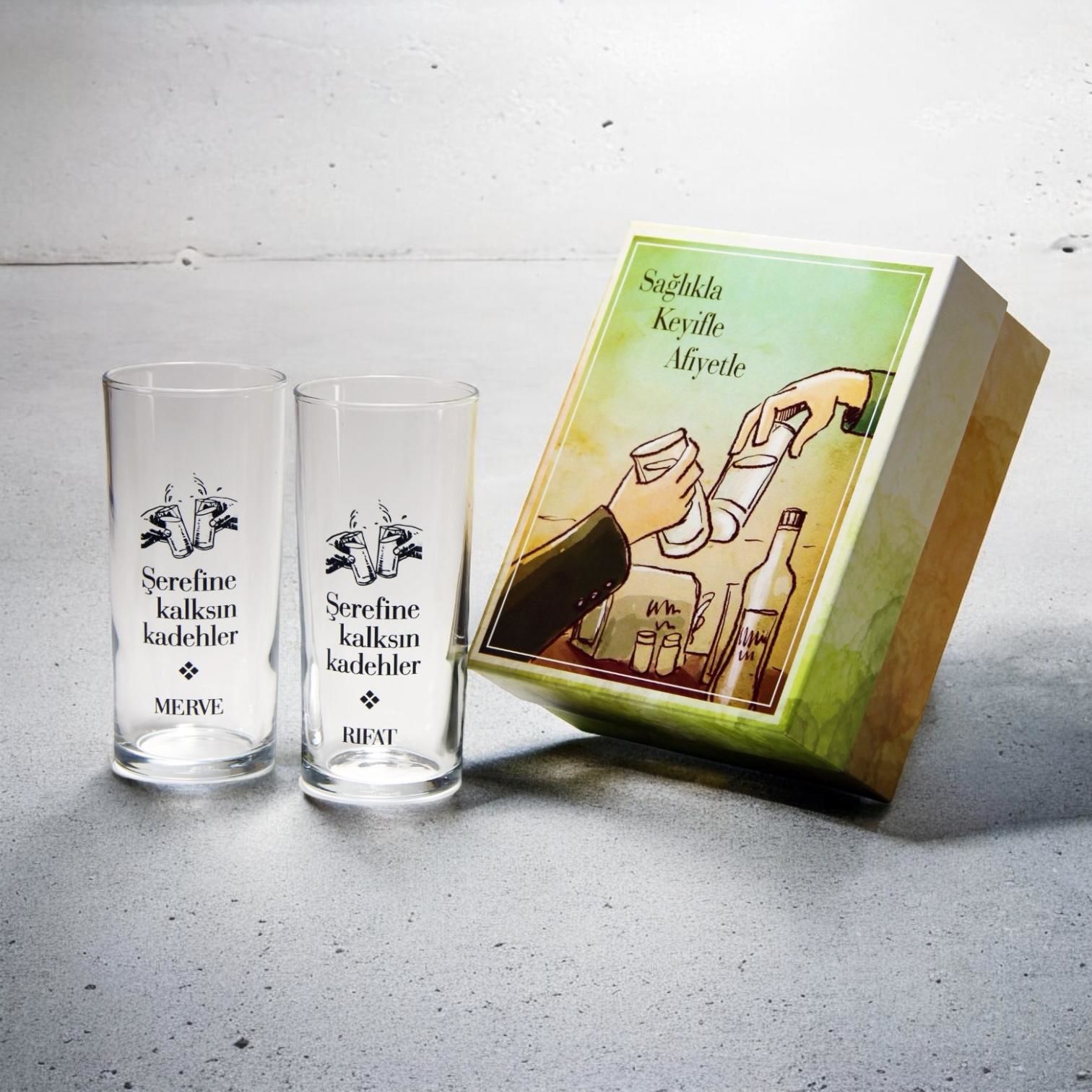 Özel Baskılı İkili Rakı Bardak Seti tamamen size özel hazırlanmaktadır.